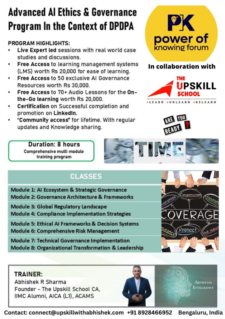 Power of Knowing Forum, in collaboration with The Upskill School, is launching the “ADVANCED AI ETHICS & GOVERNANCE PROGRAM”! 🔍 Powered by the proprietary PERKS Model, this is your chance […]